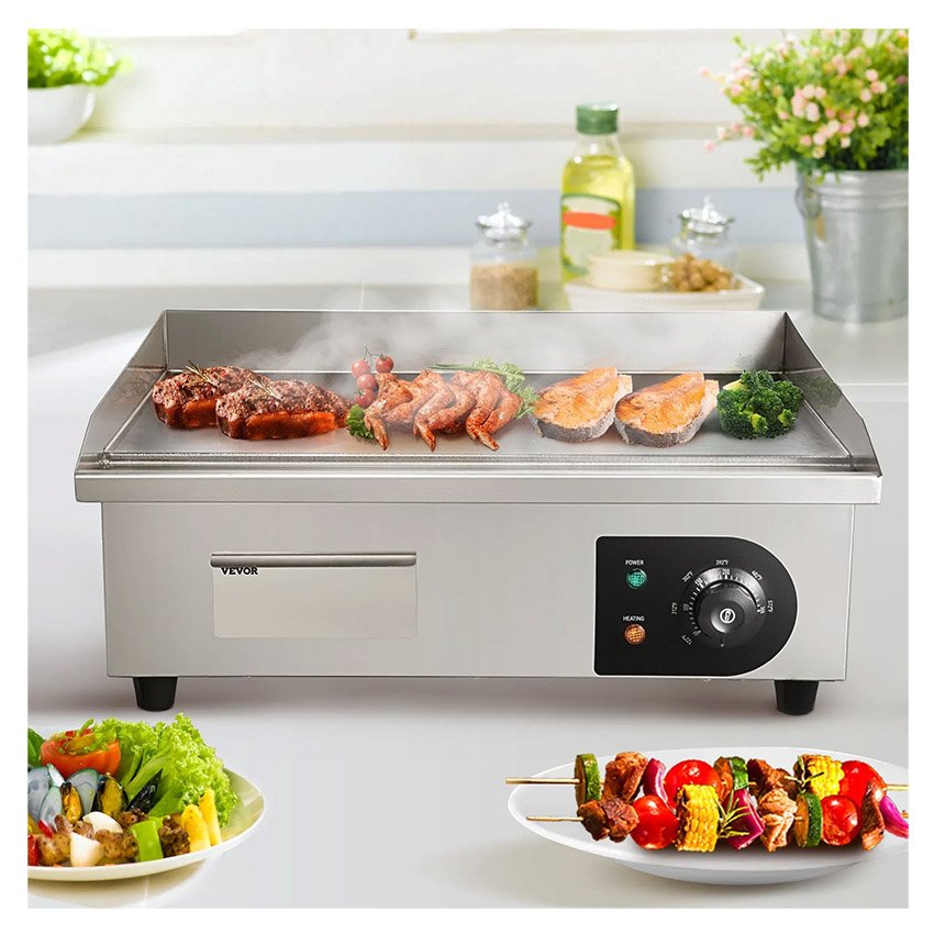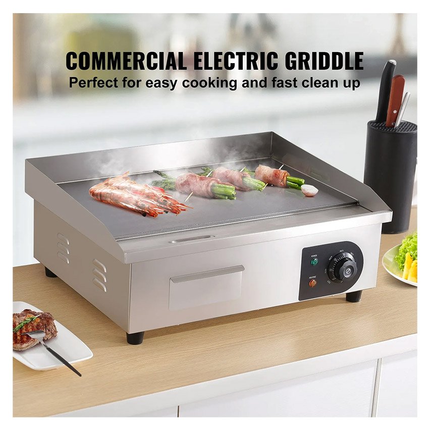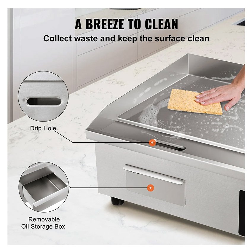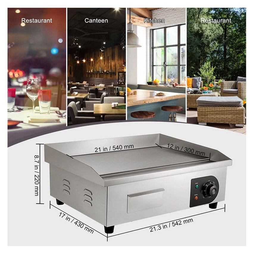 – Pour Divers Aliments : Notre plancha commerciale est parfaite pour la famille ou les lieux commerciaux, tels que les restaurants, les magasins, les stands de bord de route et les snack-bars. Elle convient parfaitement pour faire ressortir la saveur des crêpes, du bacon croustillant, du fromage grillé, des plats frits, des omelettes, des pizzas, des steaks et des hamburgers. Préparez-vous à faire danser vos papilles gustatives !
