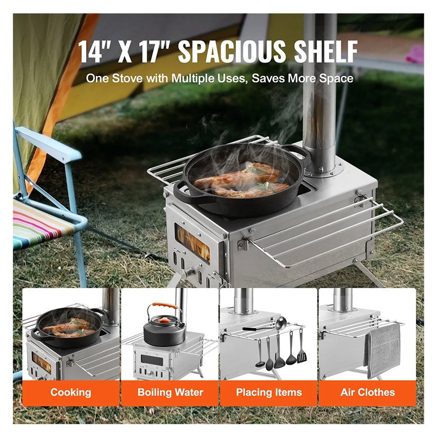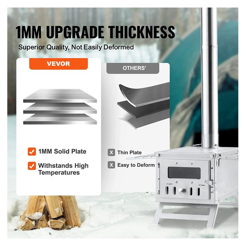 – Panneaux renforcés de 1 mm : fabriqué en acier inoxydable résistant à la rouille, notre poêle à bois peut résister à des températures élevées et à des conditions extérieures difficiles. Les panneaux de 1 mm / 0,04″ d’épaisseur empêchent la déformation même lors du transport d’objets lourds, garantissant ainsi durabilité et longévité.