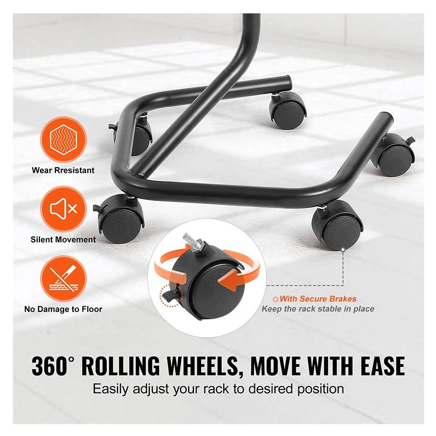– Mobilité sans effort : grâce à ses 5 roulettes pivotantes à 360°, ce présentoir à cartes rotatif se déplace aisément. De plus, ses 3 roulettes verrouillables avec freins fiables assurent une stabilité et une sécurité optimales, vous permettant de le positionner où vous le souhaitez.