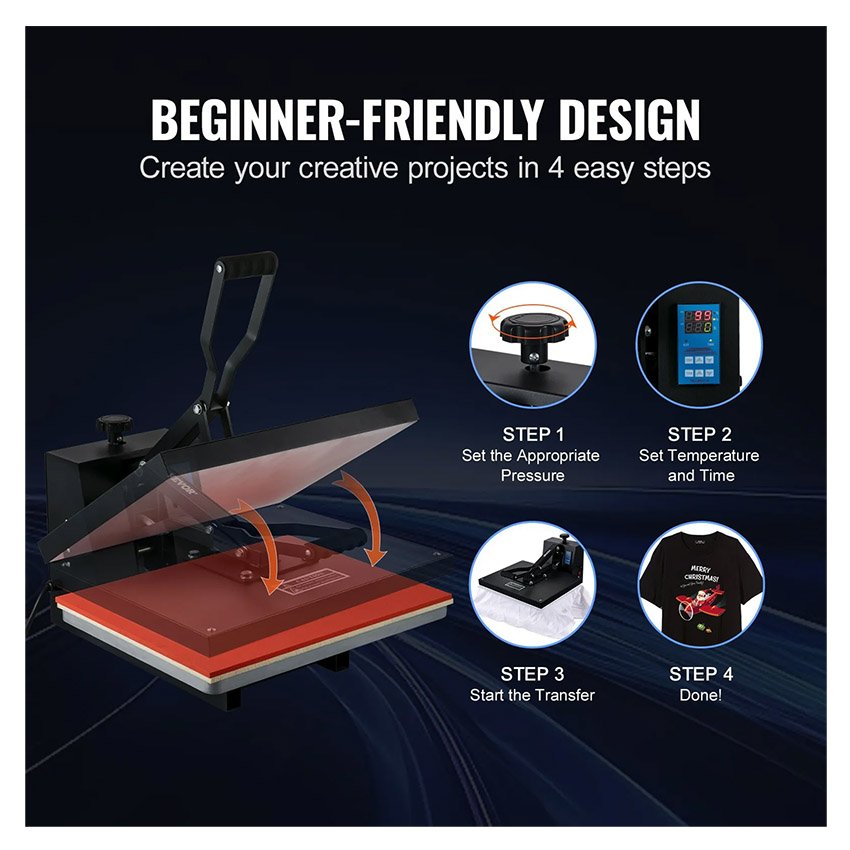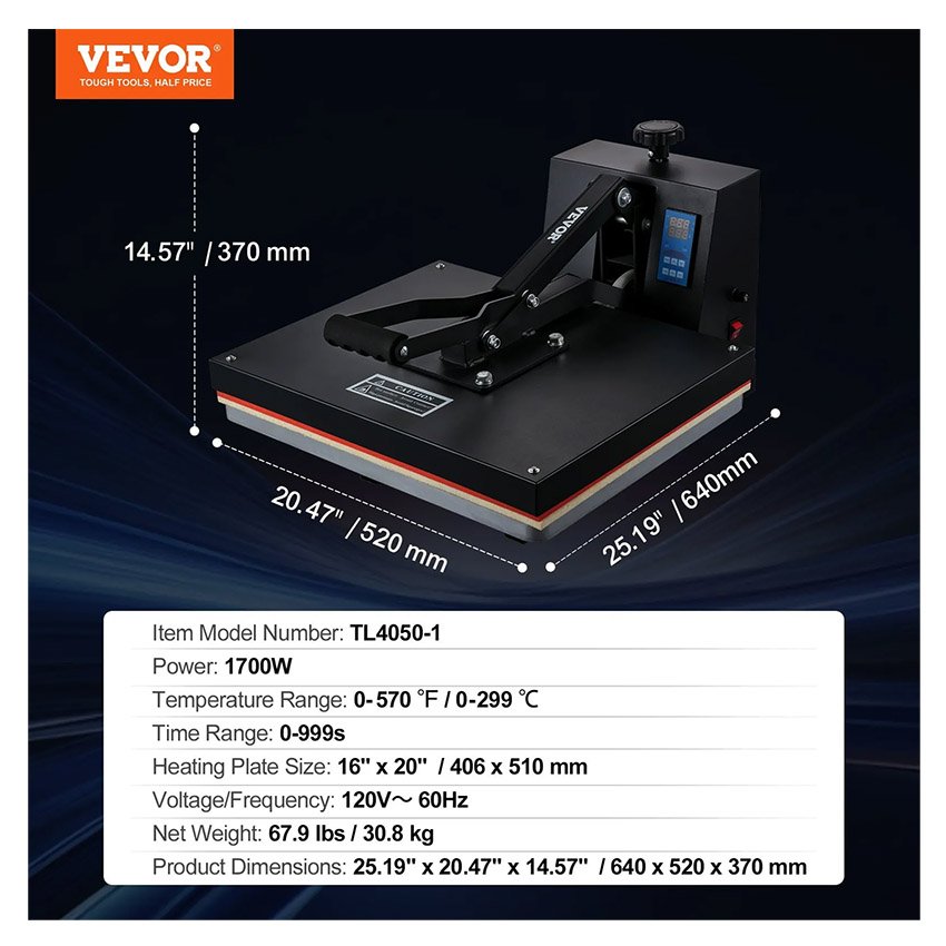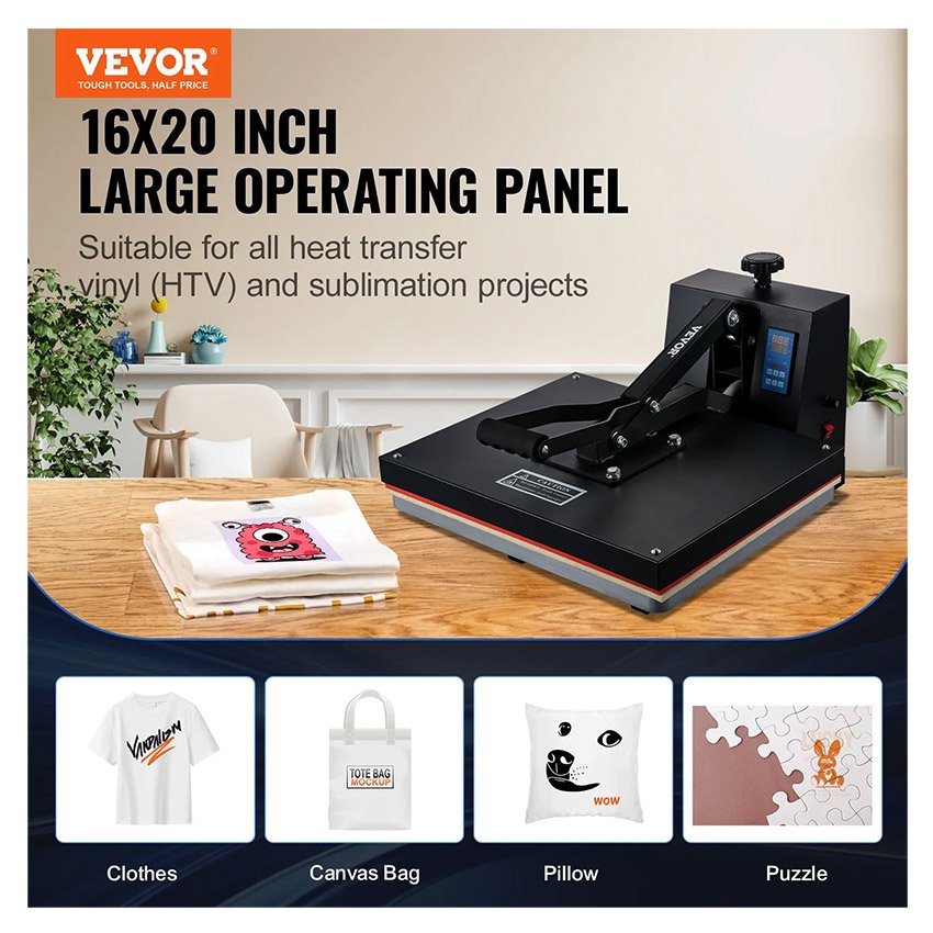 VEVOR Presse à chaud 16 x 20 pouces / 40,6 x 50,8 cm pour impression par sublimation et transfert pour t-shirts personnalisés VEVOR