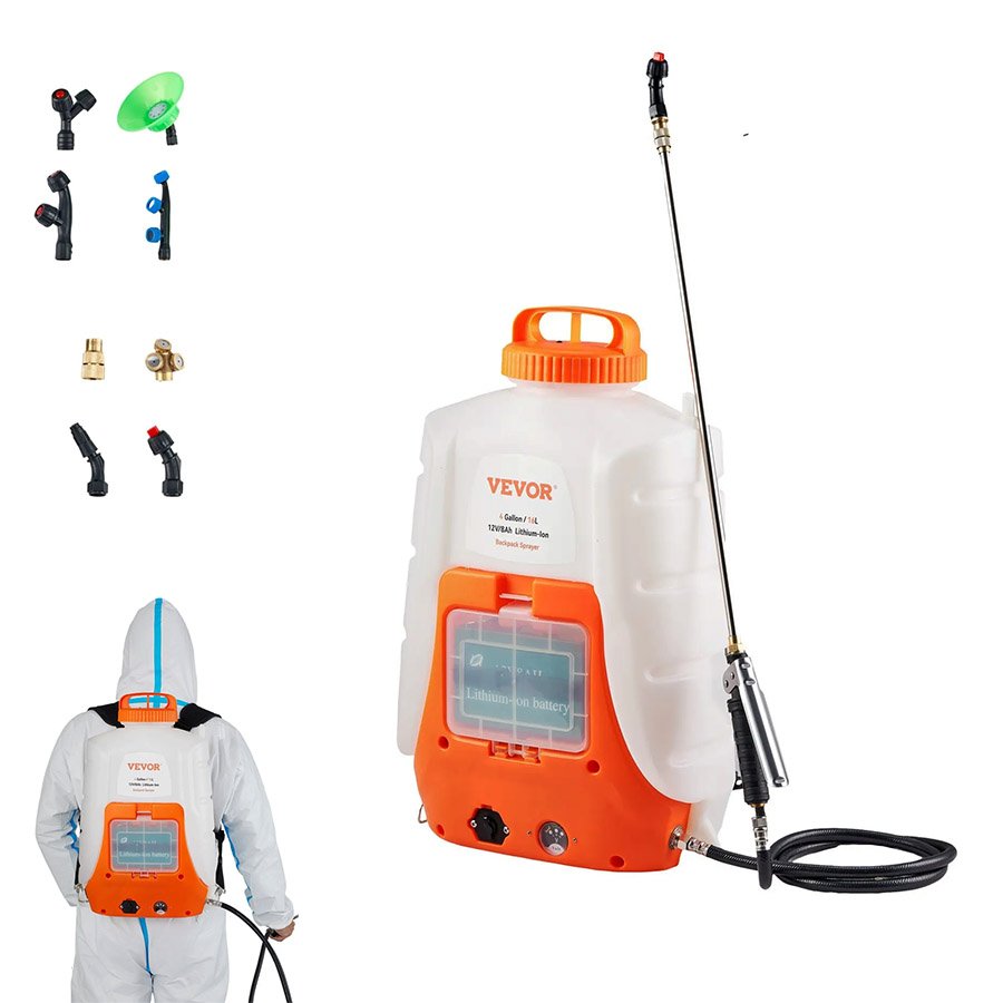 VEVOR Pulvérisateur Électrique à Dos à Batterie Pression Réglable 0-6,2 bar Réservoir 16 L 8 Buses 2 Baguettes Batterie 12 V 8 Ah Couvercle à Large Ouverture pour Désherbage Pulvérisation Nettoyage