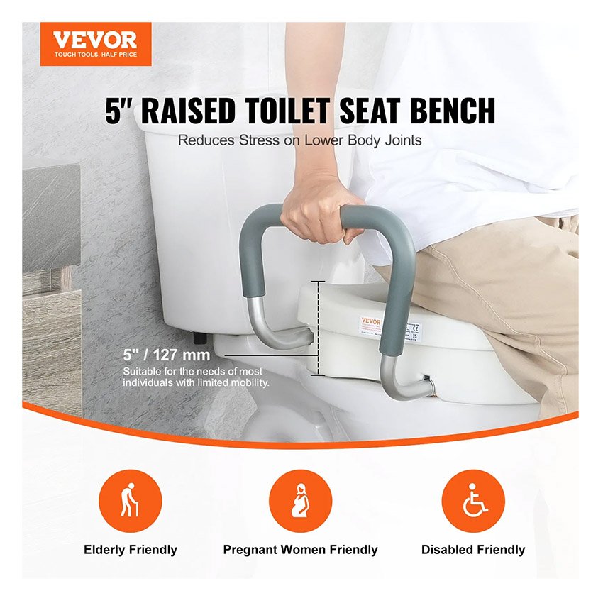 ✔ Siège de toilette surélevé de 127 mm (5 pouces) : Le siège de toilette surélevé surélève le siège de 127 mm (5 pouces), offrant une option confortable pour les femmes enceintes, les personnes âgées, les personnes blessées et les personnes handicapées, réduisant ainsi les tensions articulaires.
