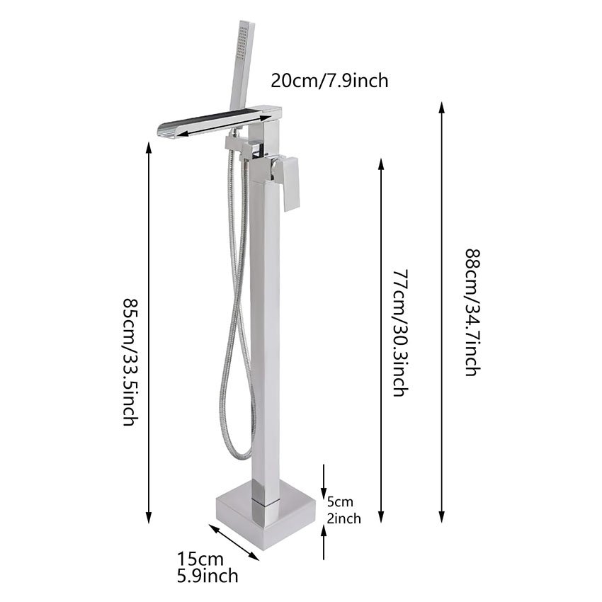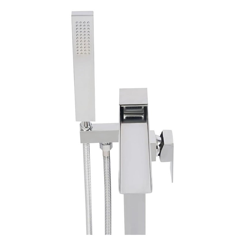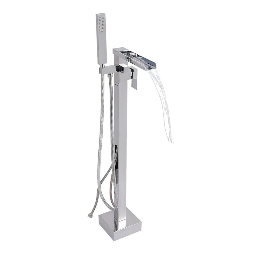 Robinet de baignoire sur pied avec douchette – Pivotant Ă 360° – Avec douchette – Montage au sol – ArgentĂ©