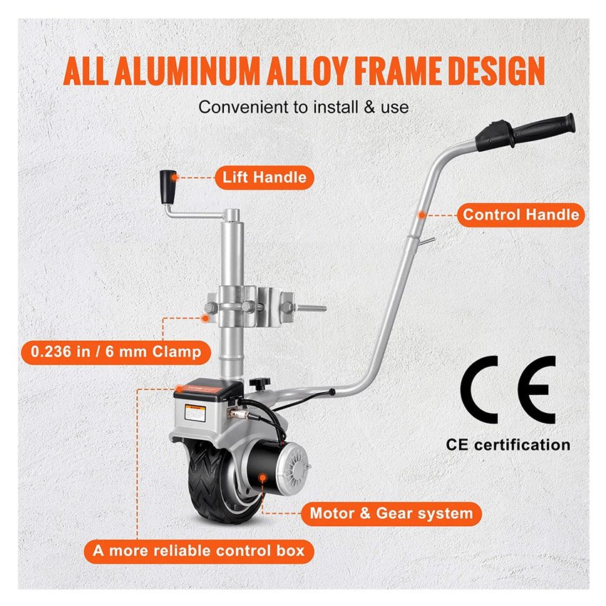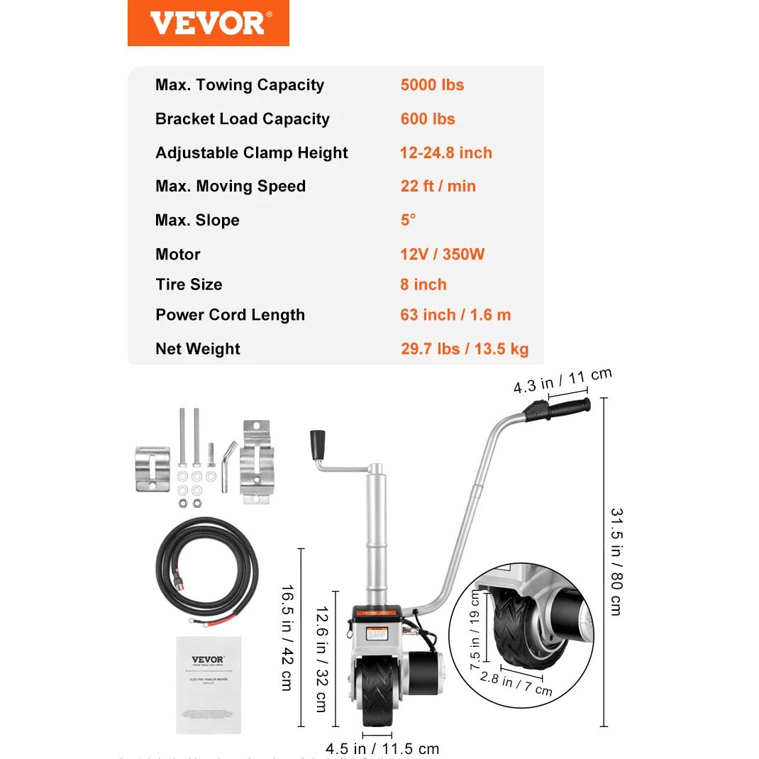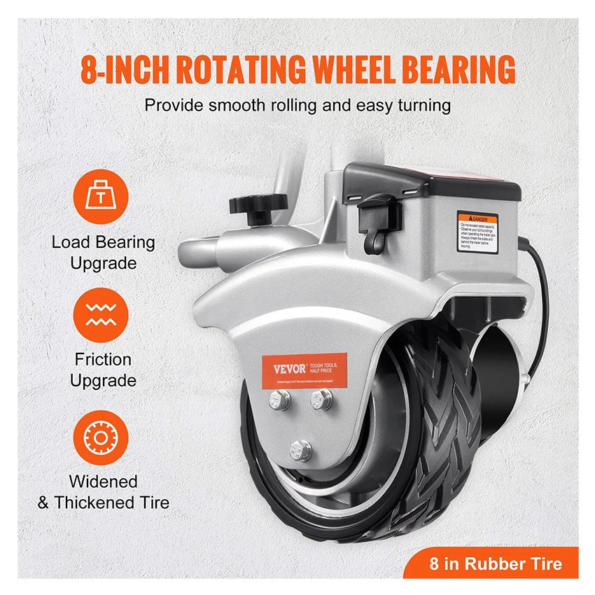 VEVOR Roue Jockey Motorisée Électrique Remorque 2268 kg Chariot de Remorque 350 W 12 V Vitesse Déplacement 6,7 m/min Hauteur Serrage 30,5-63 cm Pneu Caoutchouc 20,3 cm pour Remorques Caravanes Bateaux