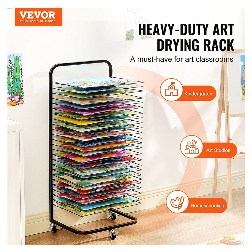 VEVOR Sèche-dessins sur Roulettes, , Support de Séchage d’Œuvre d’Art 432x330x1000 mm, en Acier au Carbone, pour Salle de Classe, Studios d’Art, Écoles, Noir