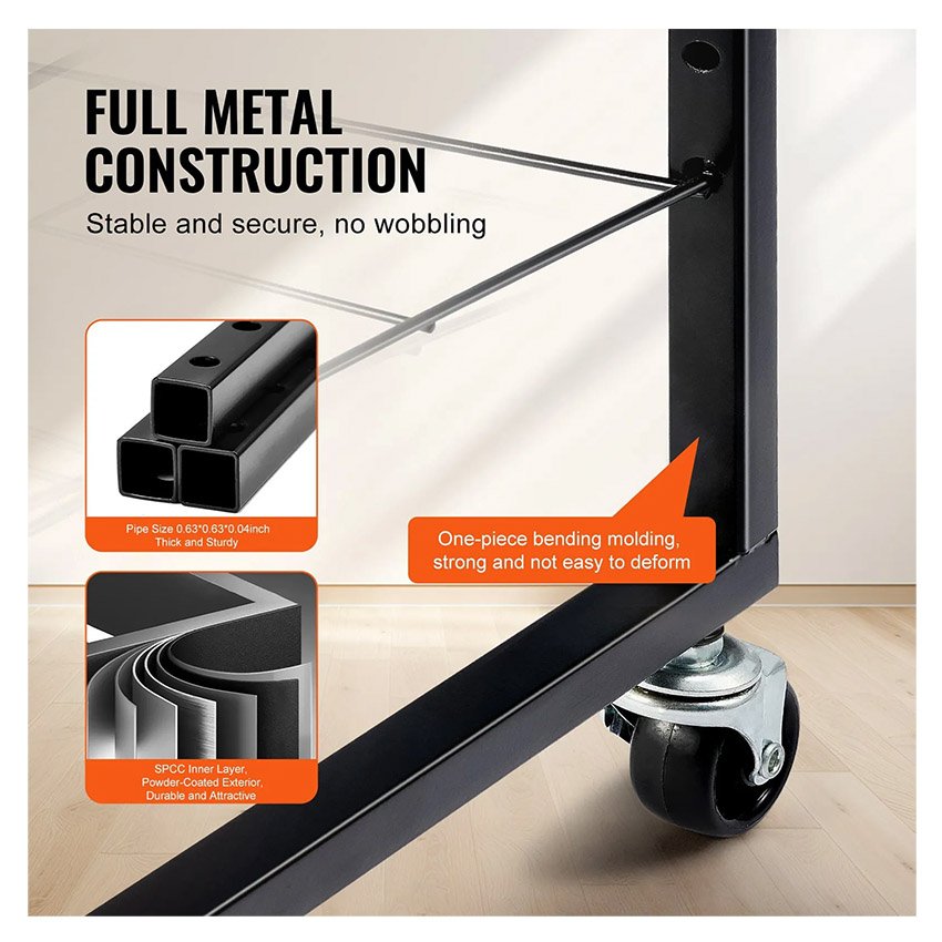 – Construction entièrement en métal durable : notre support de séchage de peinture est construit avec une structure en métal solide. Les tiges de poussée courbées et les montants intégrés résistent à la flexion au fil du temps, même lorsqu’ils sont entièrement chargés d’œuvres d’art. Cela assure que le support reste robuste et fiable pour une utilisation à long terme.