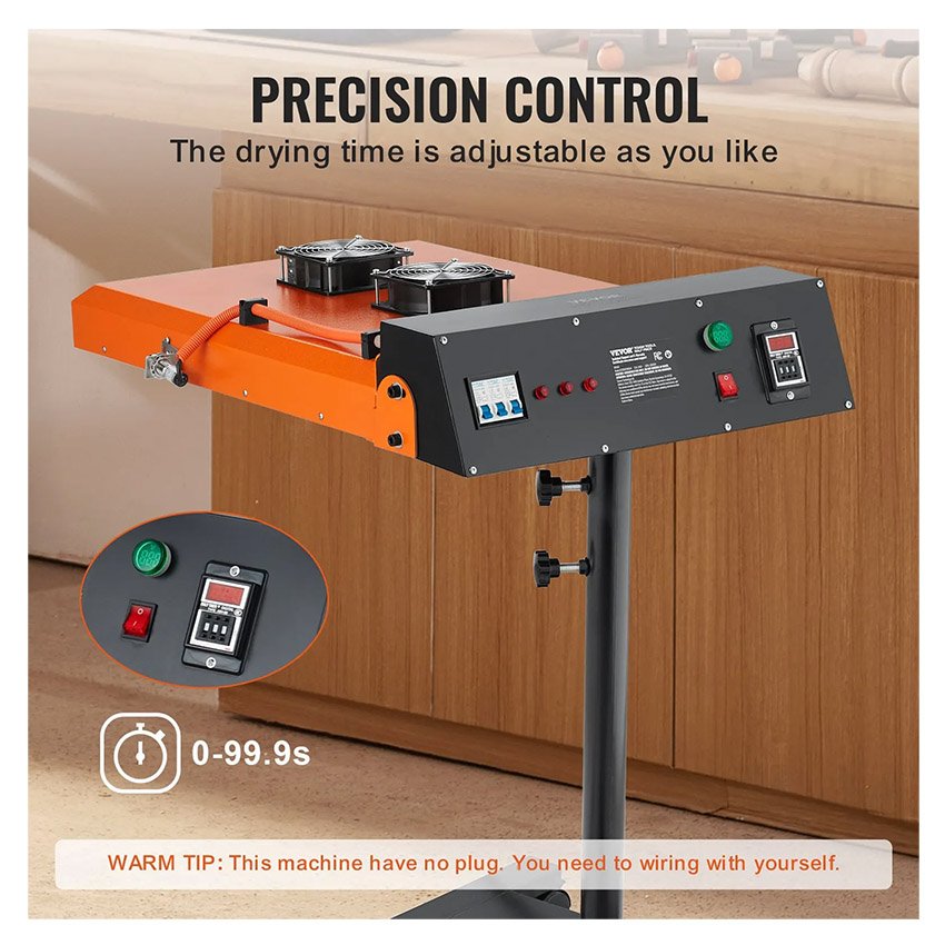 – Puissance élevée de 6 000 W : Plus besoin d’attendre que les impressions sèchent ! Notre séchoir flash est doté d’un élément chauffant haute puissance intégré de 6 000 W avec des tubes en verre infrarouge pour une efficacité thermique élevée, chauffant en seulement 20 secondes.