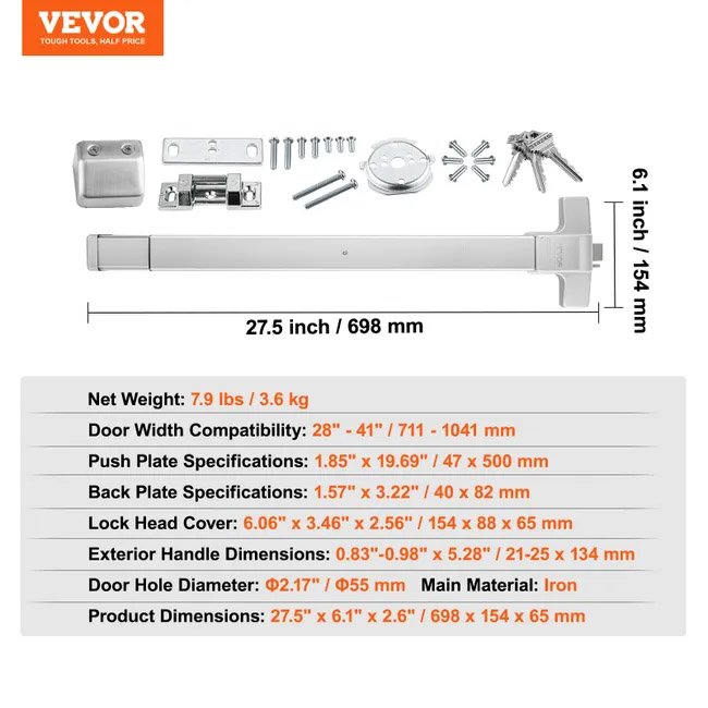Serrure Anti-Panique Universelle pour Porte de Sortie 71 cm de Largeur Dispositif Anti-Panique Issue de Secours Barre 1 Carré Évacuation Rapide VEVOR