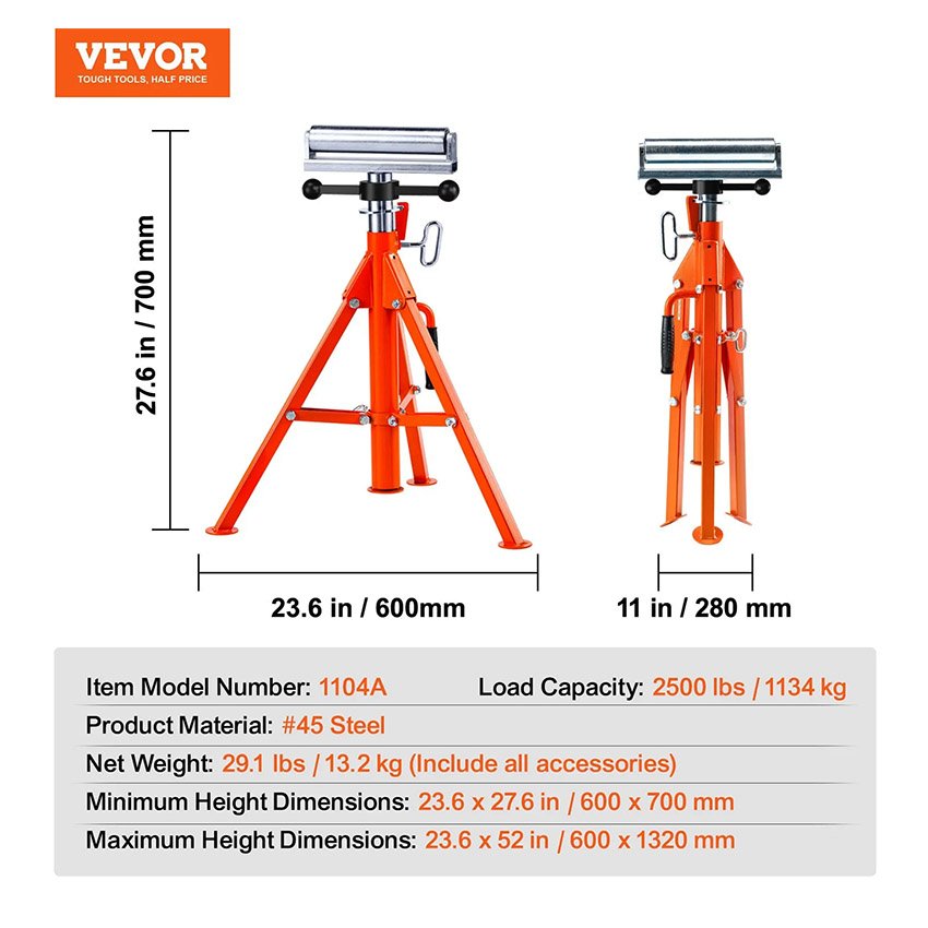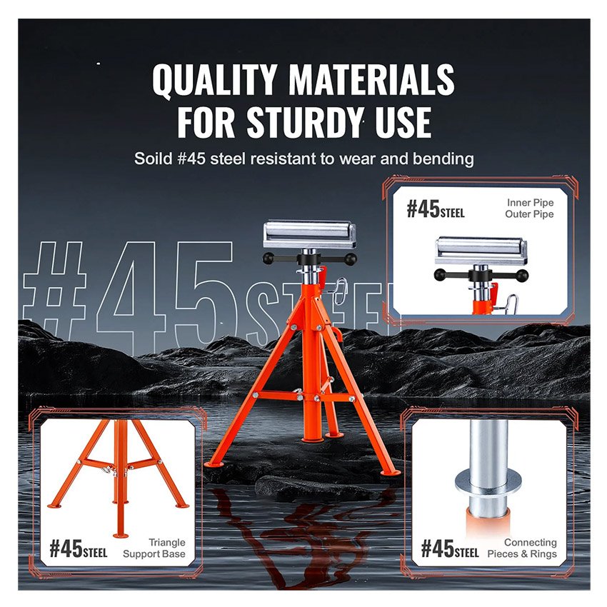 – Stabilité à toute épreuve : faites confiance au support à rouleaux VEVOR, faites confiance à vos projets. Sa base triangulaire stable assure un support inébranlable, capable de supporter une charge lourde de 1 134 kg et d’accueillir des tuyaux jusqu’à 12 pouces/305 mm de diamètre.
