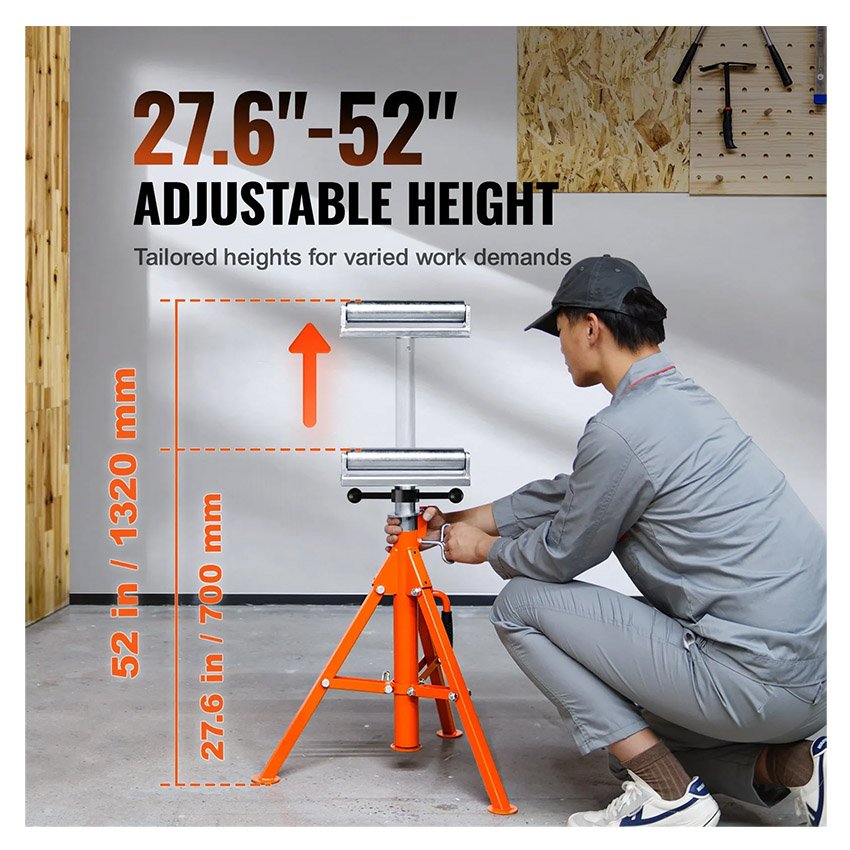 VEVOR Servante à Rouleaux Capacité de Charge 1134 kg Support à Rouleau Pliable Hauteur Réglable 700-1320 mm en Acier 45# avec Base Stable pour Accueillir Tuyaux Jusqu’à 305 mm de Diamètre, Planches