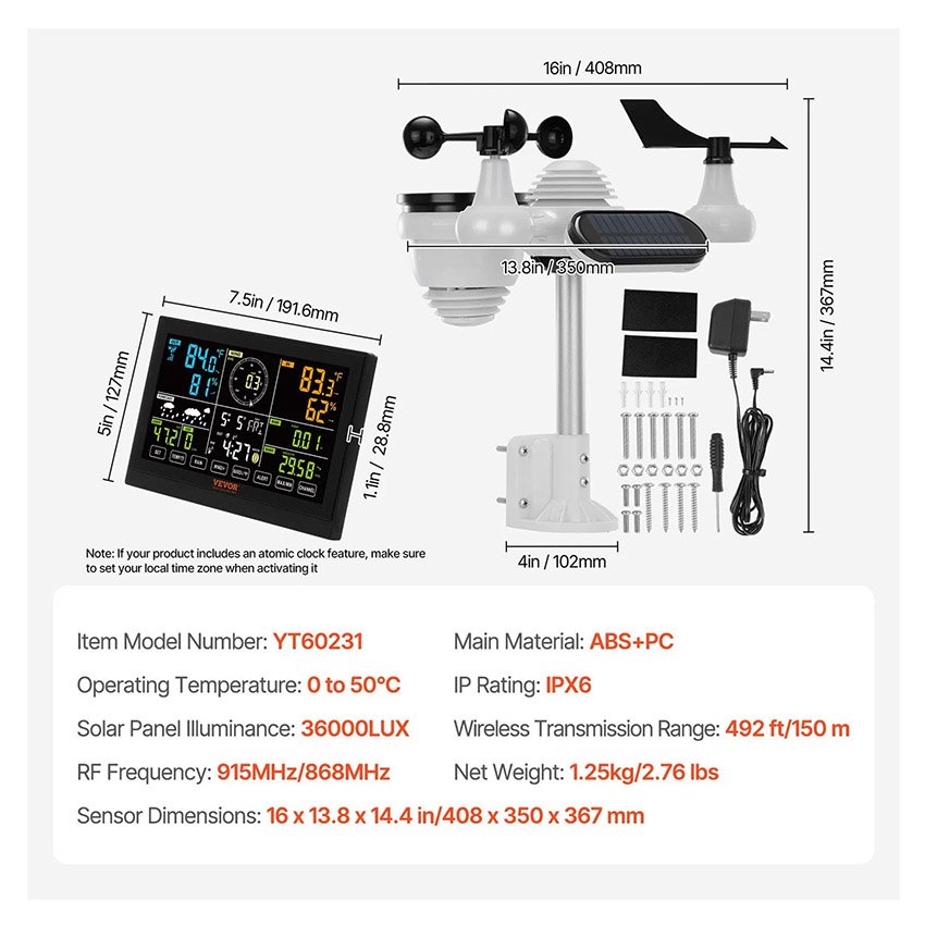 ✅ Dimensions du capteur 7 en 1 : 16 x 13,8 x 14,4 pouces / 408 x 350 x 367 mm