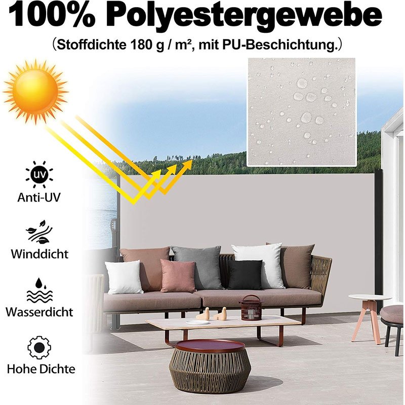 store latéral extérieur, pare-vue terrasse, écran de confidentialité jardin, store rétractable balcon, store anti-UV imperméable, cloison extérieure extensible, store coupe-vent, panneau occultant terrasse, protection solaire jardin, store polyester 160×300