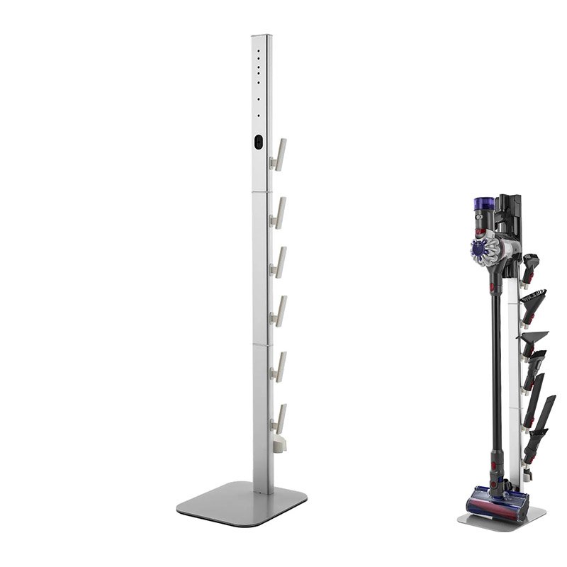 – Rangement efficace : Ce support pour aspirateur Dyson mesure 1260 mm de haut et est équipé de 6 crochets pour ranger 6 accessoires. Il est doté d’un emplacement pour câbles et d’une prise de charge, pour un rangement facile et une recharge aisée