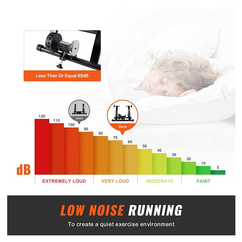 – Fonctionnement silencieux et fluide : conçu avec un moteur à volant pour minimiser les niveaux de bruit à ≤ 65 dB, offrant une expérience de conduite plus silencieuse et plus agréable avec notre support d’entraînement pour vélo d’intérieur. Remarque : les niveaux de bruit peuvent varier en fonction du matériau des pneus et de la bande de roulement, les vélos de route étant recommandés pour un fonctionnement le plus silencieux.