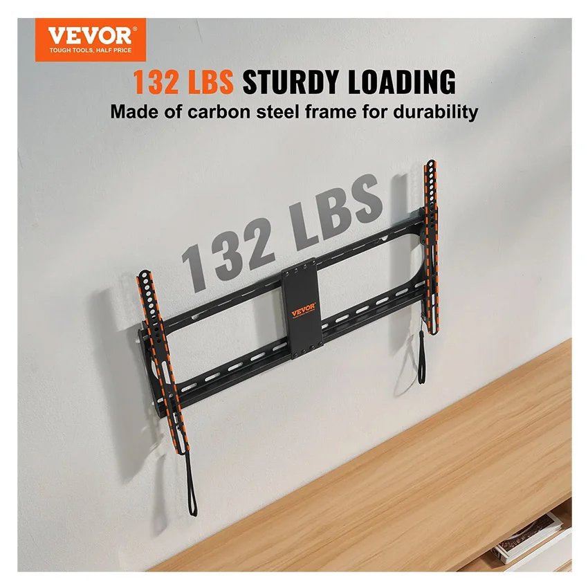 – Support Solide pour Vos Téléviseurs : Notre support mural inclinable pour TV est fabriqué en acier au carbone avec une finition mate durable, offrant un support solide et fiable. Il est résistant à l’usure et conçu pour durer, avec une capacité de poids maximale de 60 kg. Dites adieu aux oscillations et au basculement.