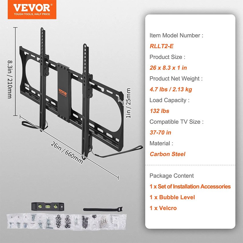– Support Solide pour Vos Téléviseurs : Notre support mural inclinable pour TV est fabriqué en acier au carbone avec une finition mate durable, offrant un support solide et fiable. Il est résistant à l’usure et conçu pour durer, avec une capacité de poids maximale de 60 kg. Dites adieu aux oscillations et au basculement.