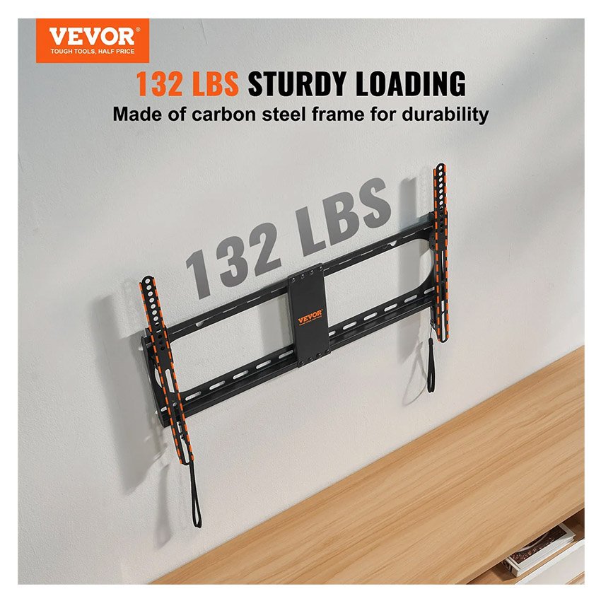 VEVOR Support Mural TV pour Écrans 94-177,8 cm Jusqu’à 60 kg Fixation TV Murale Inclinable Max. VESA 600×400 mm Min. 200×100 mm Accroche TV Mural en Acier au Carbone pour Téléviseur Maison Bureau