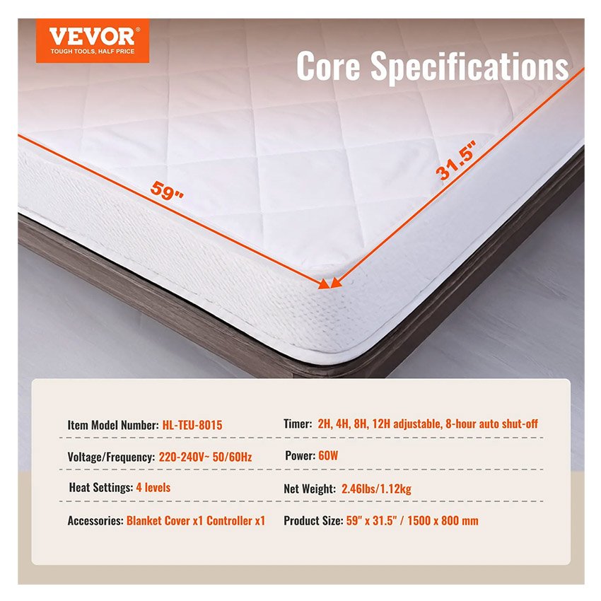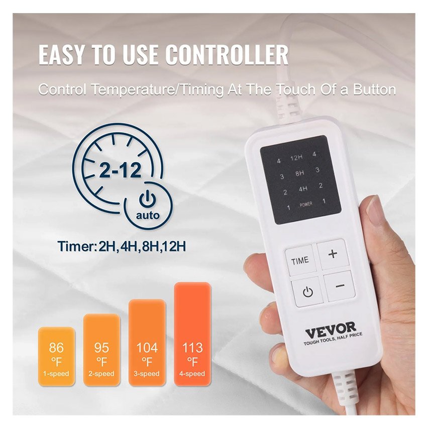 VEVOR Surmatelas Chauffant, 150×80 cm, Chauffe-lit Électrique en Tissu Brossé avec 4 Niveaux de Chauffage, Minuterie de 12 Heures, Arrêt Automatique Après 8 Heures, Sangle Contour Élastique Profonde