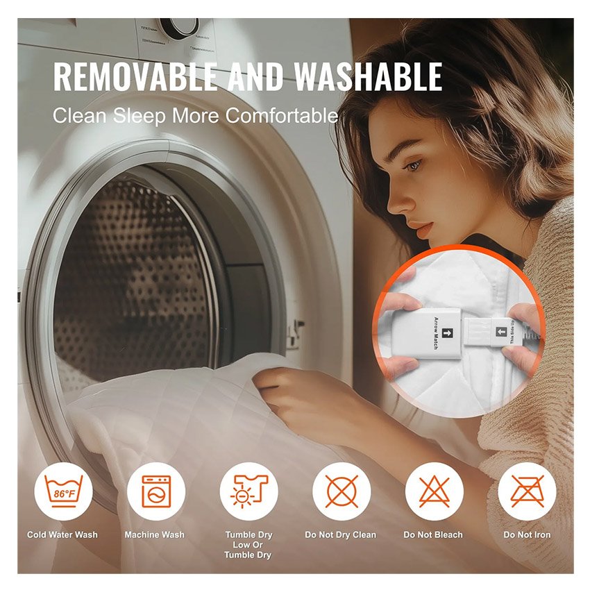 – Amovible et lavable : L’ensemble du surmatelas chauffant électrique peut retirer le contrôleur et les tissus lavables, ce qui est facile à nettoyer et assure un environnement de sommeil propre, vous permettant de profiter d’un sommeil plus confortable. Supporte le lavage à l’eau froide, le lavage en machine, le séchage à basse température ou le séchage à l’ombre, veuillez faire attention à ne pas nettoyer à sec, blanchir et repasser pour maintenir la durée de vie et la qualité du produit.