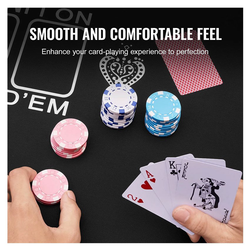 ✔ Doux et facile à nettoyer : le tapis de table de poker présente une surface lisse et confortable, offrant une friction idéale pour permettre aux cartes de glisser parfaitement sans glisser. Le motif est clair et ne se décolore pas facilement, il peut également protéger la table des rayures et des taches, lorsque du liquide éclabousse le tapis, vous pouvez le nettoyer facilement sans affecter votre travail ou votre divertissement.