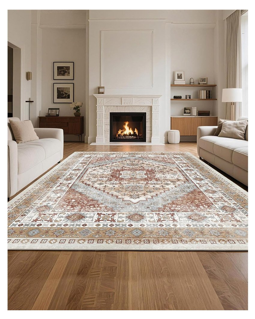 Tapis Salon 2,4 x 3 m Lavable Antidérapant Vintage
