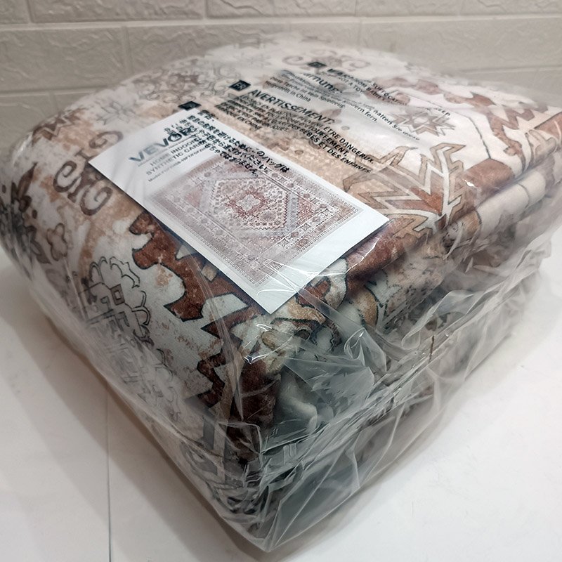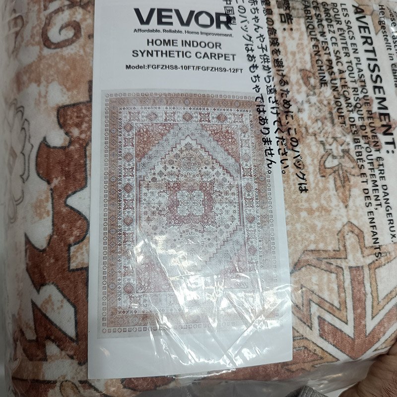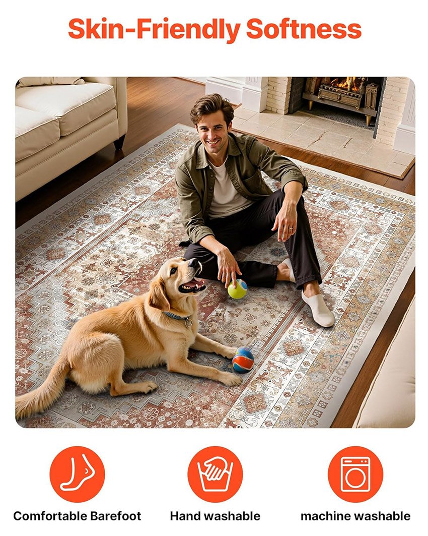 VEVOR Tapis Salon, 2,4 x 3 m, Grand Tapis Chambre Lavable et Antidérapant, Poils Courts et Denses, Résistant aux Griffures Animaux, Doux, Style Vintage, pour Chambre, Bureau, Entrée, Marron et Rouge