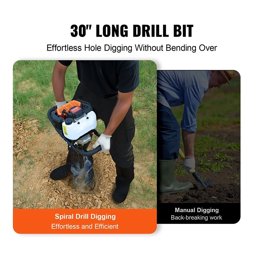 – Applications multifonctionnelles : Équipé d’un foret capable d’opérations de forage plus profondes pour répondre à une variété de scénarios d’application, adapté au perçage de trous pour les poteaux de clôture, à la pose de boîtes aux lettres, à la construction de terrasses, à la plantation d’un grand nombre d’arbres, ainsi qu’à de nombreuses autres applications de pelouse, expédié dans des emballages non emballés et peut être utilisé immédiatement après réception du produit.