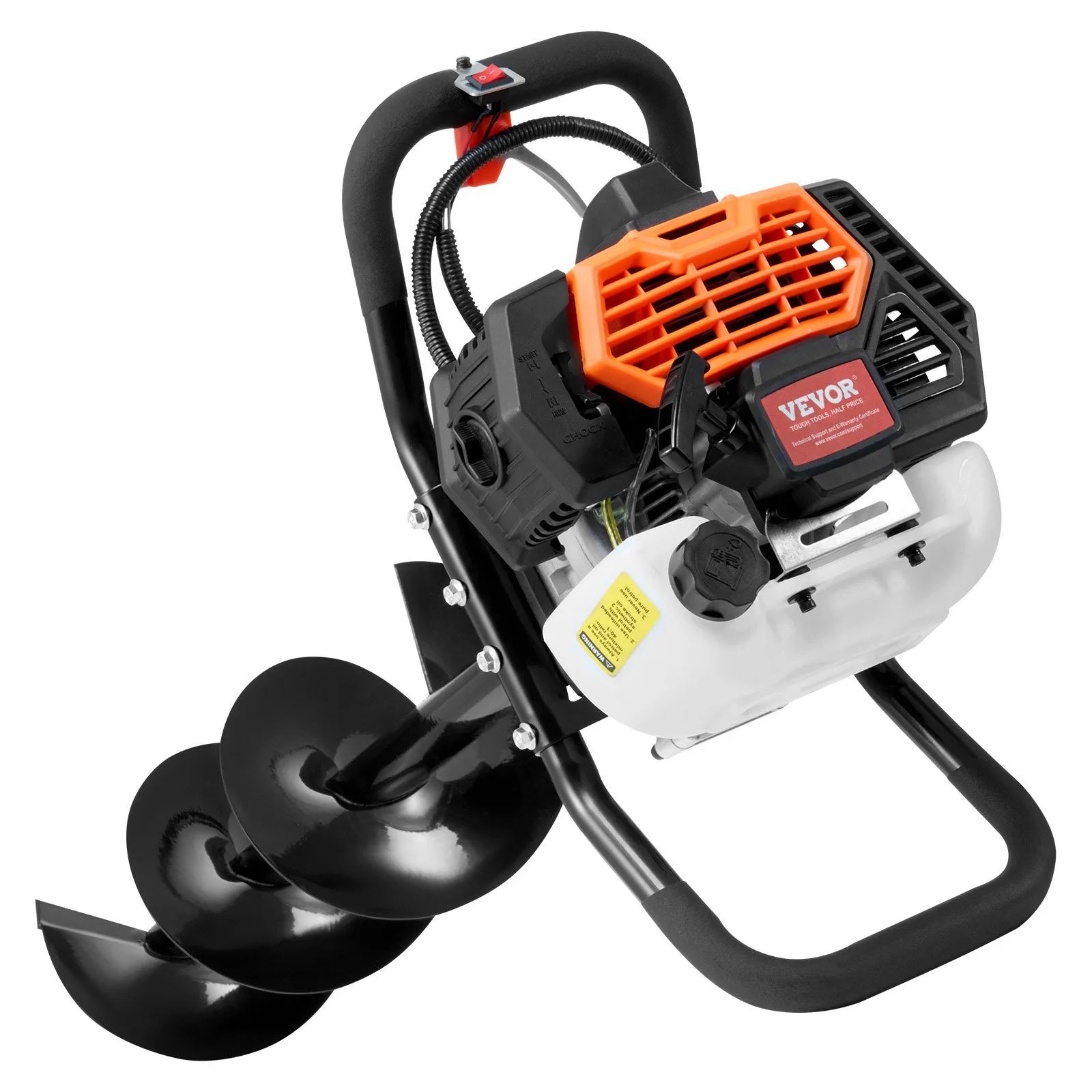 VEVOR Tarière à Essence, 52 CC, Tarière Thermique de Plantation 1450 W avec 2 Forets 200 mm, 2 Tiges d’Extension, Tarière Spirale Moteur Puissant, pour Plantes Jardin, Jardinage, Planter, Creuser de Trous