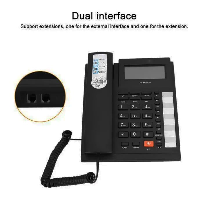 Téléphone filaire de bureau KX-T7007CID Double interface Identification de l’appelant Noir