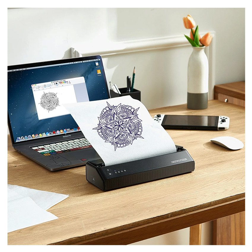 – Impression de haute qualité : notre imprimante de pochoirs de tatouage utilise la technologie d’impression thermique pour fournir des impressions haute résolution, garantissant la qualité et la clarté de vos créations. Avec un bruit minimal et sans besoin d’encre, profitez d’une expérience d’impression confortable avec des designs qui résistent à la décoloration et au flou.