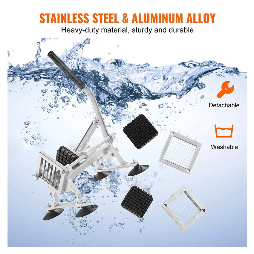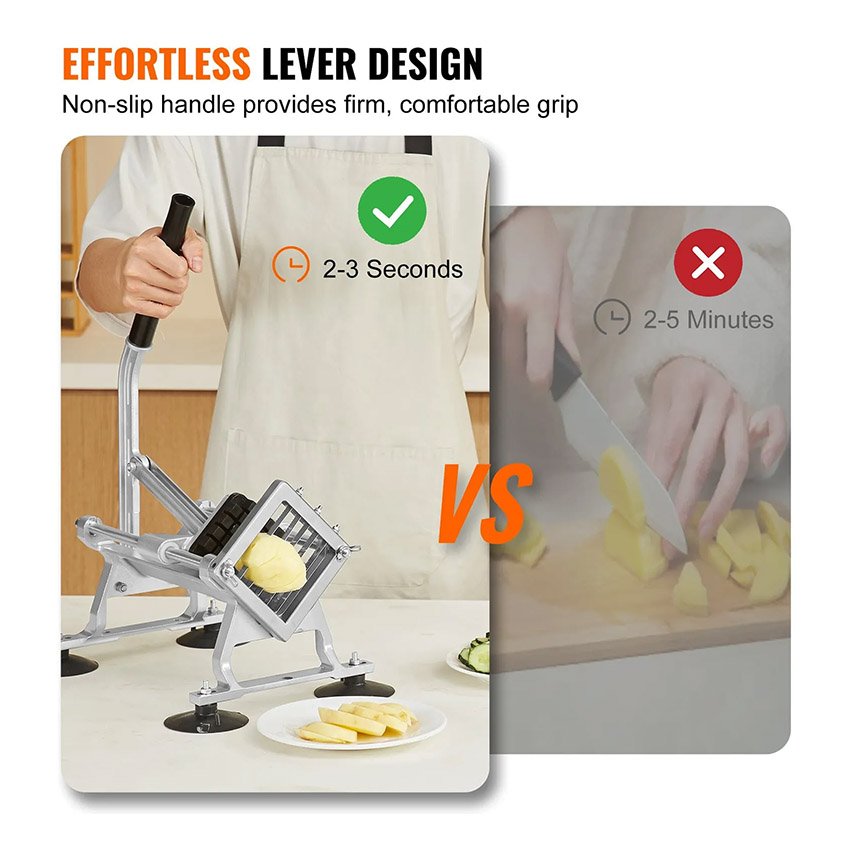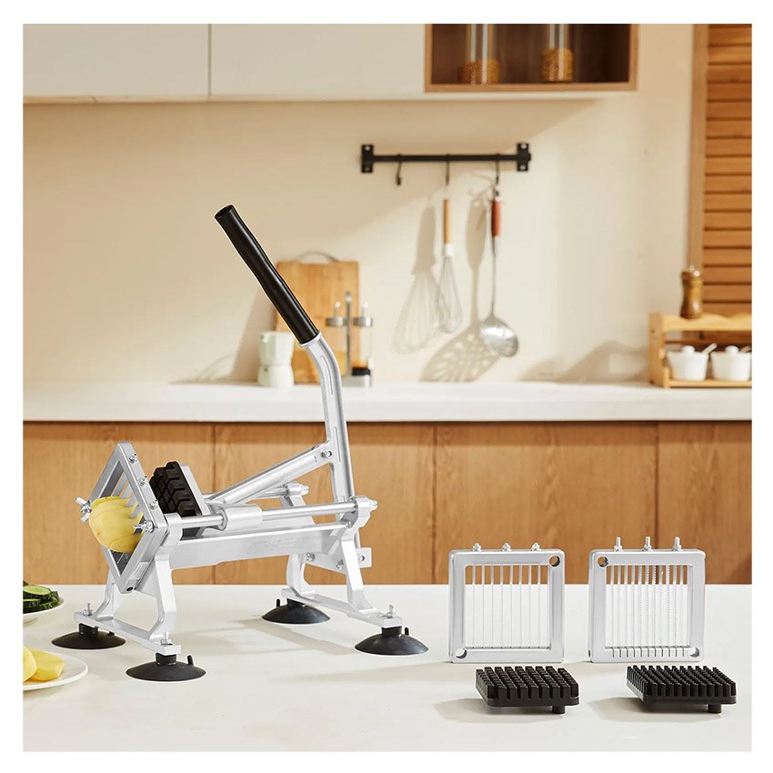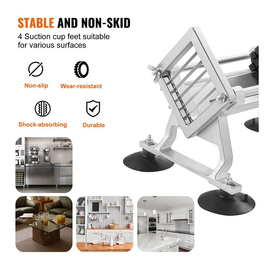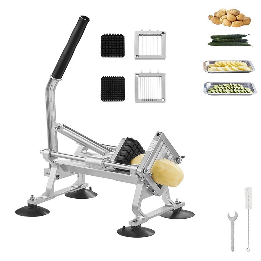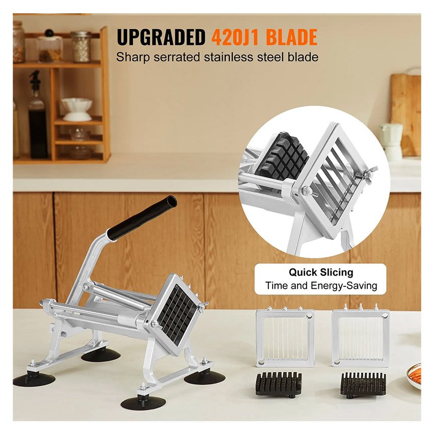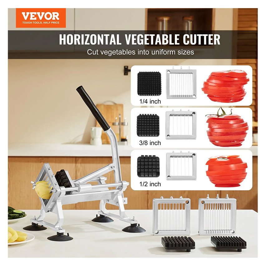 Trancheuse à légumes professionnelle VEVOR, Coupe frite trancheuse à fruits et légumes 1/4″ + 3/8″ + 1/2″, en acier inoxydable et alliage d’aluminium, trancheuse manuelle avec pieds antidérapants, pour radis, oignons, pommes de terre