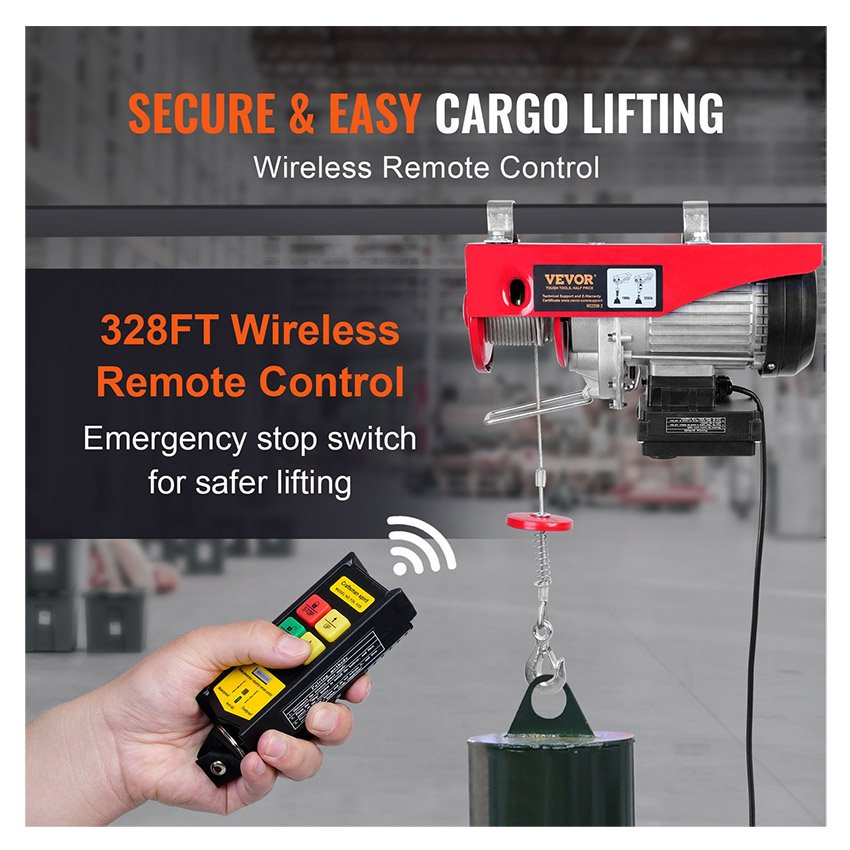 ✔ Télécommande Sans Fil : Notre palan électrique est équipé d’une télécommande sans fil qui peut être contrôler d’une distance maximale de 100 m. Elle offre une fonction de commutation exceptionnelle qui permet d’utiliser le palan électrique d’une seule main pour soulever, abaisser et placer l’équipement. La technologie au service des professionnels.