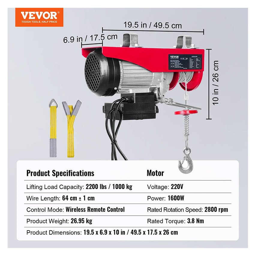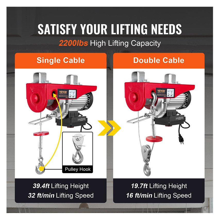 ✔ Capacité de Charge de 1000 kg : Ce palan électrique à câble peut facilement soulever de petits moteurs, des transmissions, de gros outils d’atelier ou des matériaux de construction. Capacité : 500 kg (câble simple), 1000 kg (câble double). Le palan dont les professionnelles avaient toujours rêvé.