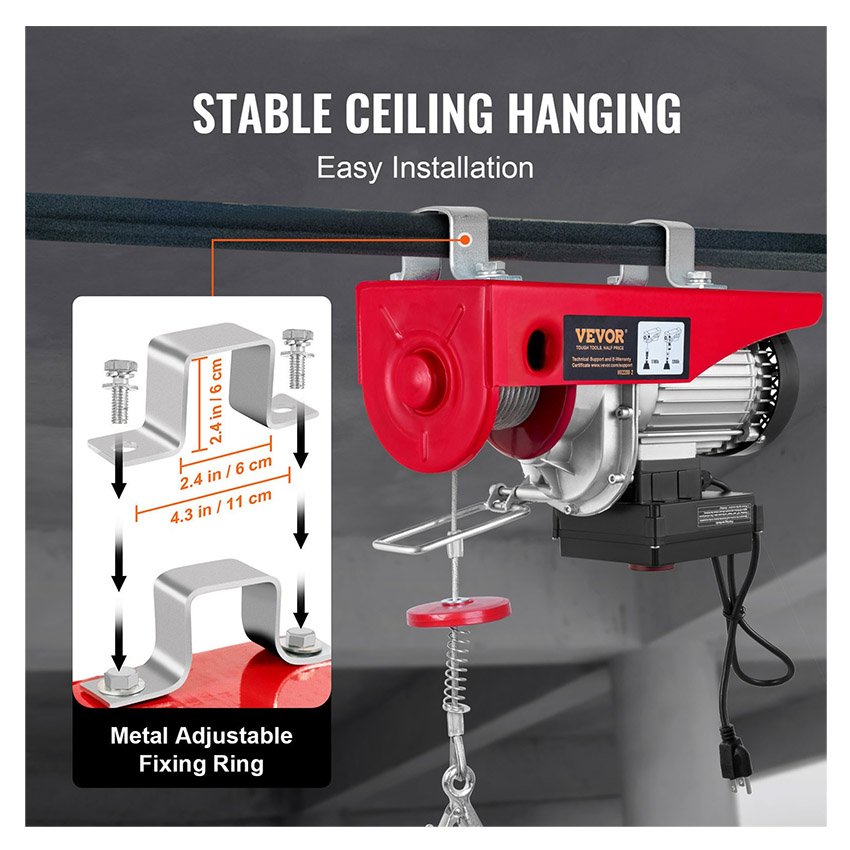 ✔ Facile à Installer : Ce treuil à câble peut être accroché directement au plafond à l’aide de bandes métalliques ou en bois massif. De plus, il est équipé d’un interrupteur d’arrêt d’urgence et d’un système de freinage électromagnétique pour éviter tout glissement anormal. Votre nouveau meilleur ami pour les travaux à charge lourdes.