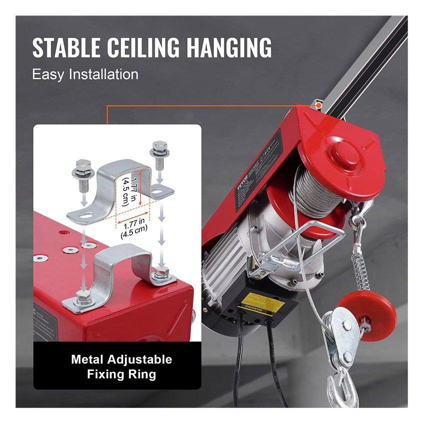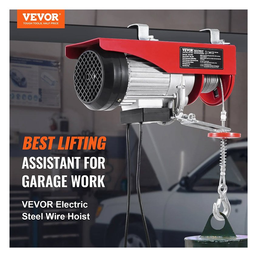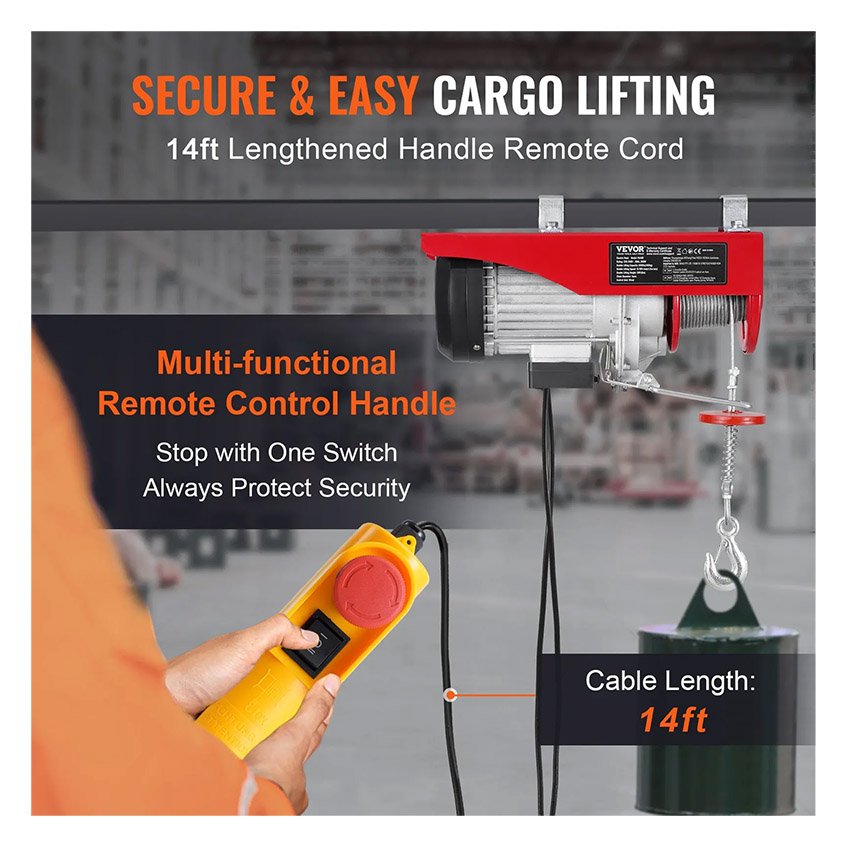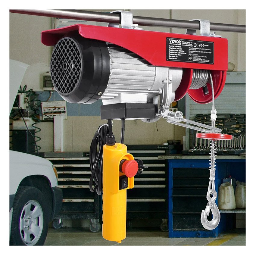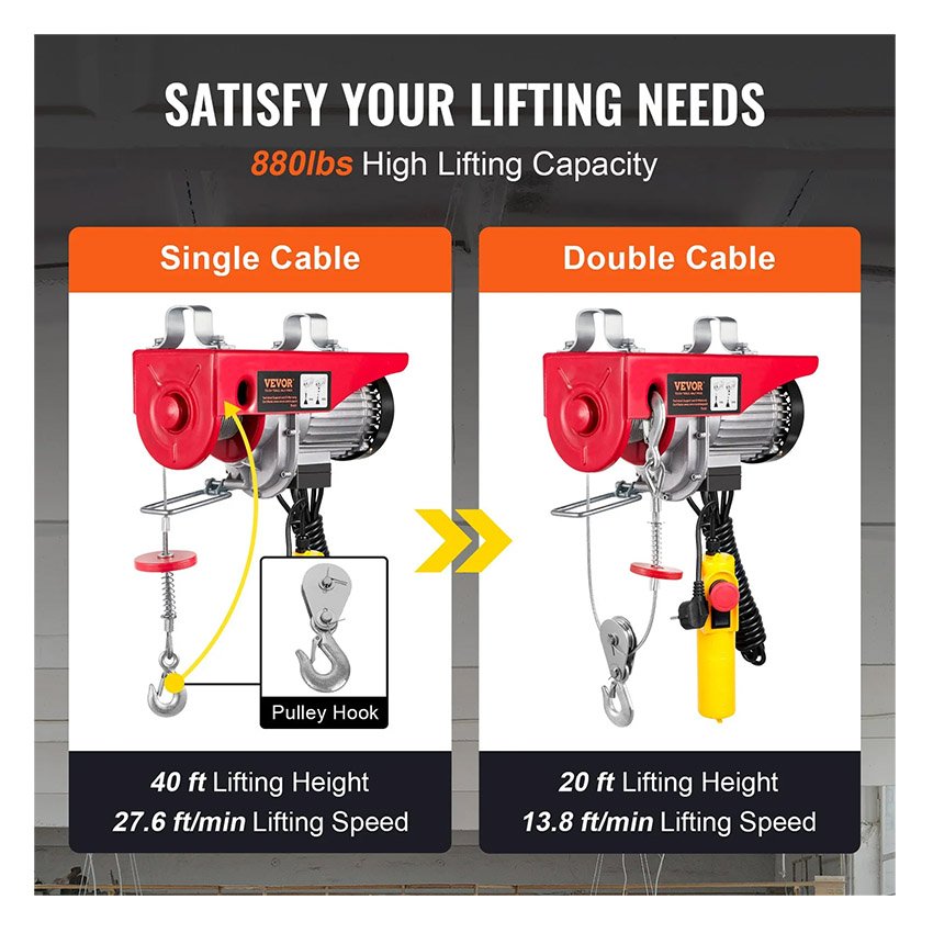 VEVOR Treuil électrique 400 kg treuil motorisé avec télécommande filaire de 4,2 m hauteur de levage de 12 m avec câble simple boucles simples/doubles, arrêt d’urgence, équipement de levage pour garage, entrepôt, usine