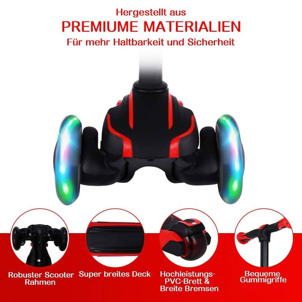 – Roues LED super cool : Les trois roues s’allument dans différentes couleurs clignotantes et donnent à la conduite une sensation unique et intéressante. Les enfants adorent cette particularité qui rend leur scooter unique.