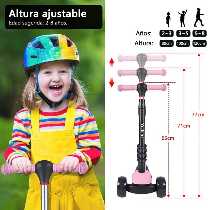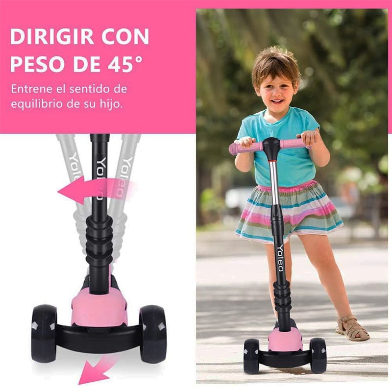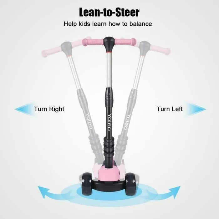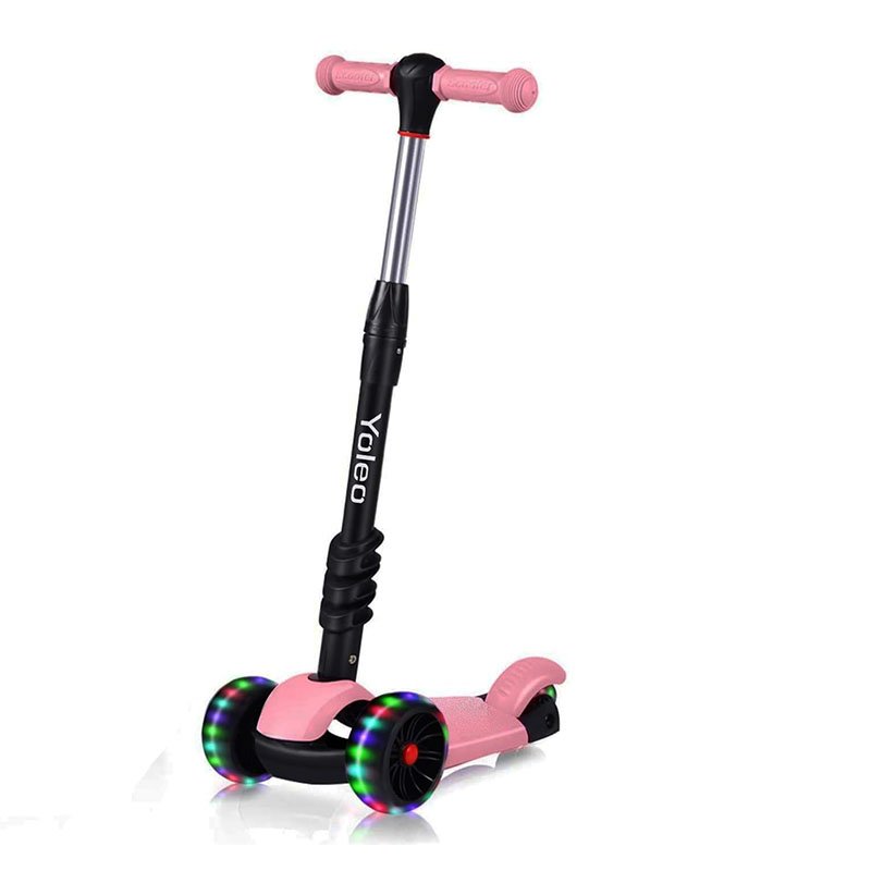 Trottinette Enfants 3 Roues YOLEO avec Roues à LED réglable en Hauteur Trottinettes Enfant, Idéal pour Les Enfants de 2 a 8 Ans Rose
